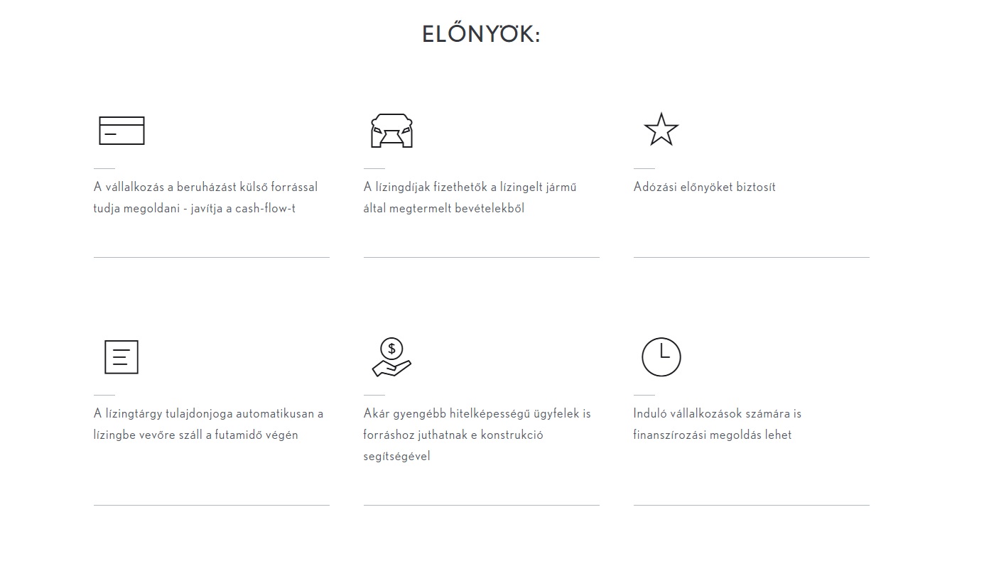 A futamidő alatt a járművet a lízingbevevő szerepelteti a könyveiben, és számolja el az értékcsökkenést (amortizációt). A forgalmiban és törzskönyvben tulajdonosként a lízingbeadó szerepel, a lízingbevevő üzembentartóként. A futamidő végén, az utolsó lízingdíj megfizetése után a gépjármű automatikusan a lízingbevevő tulajdonába kerül.