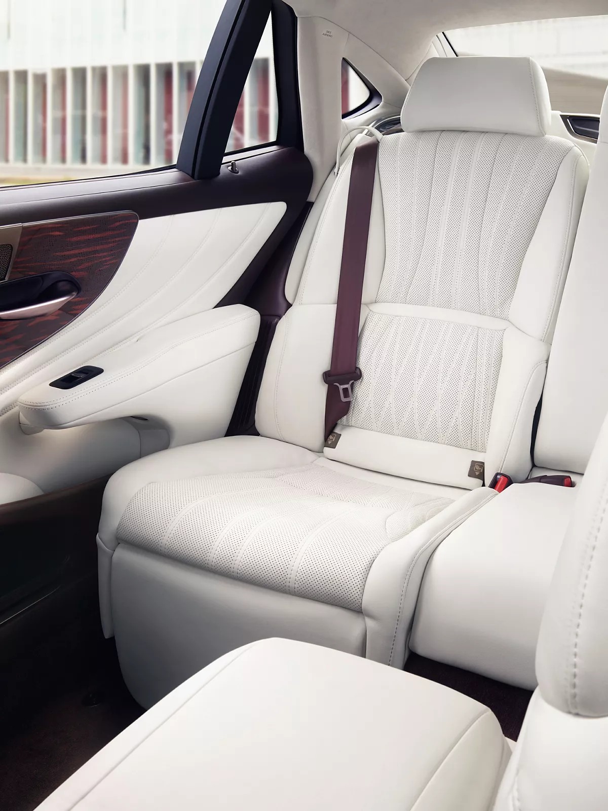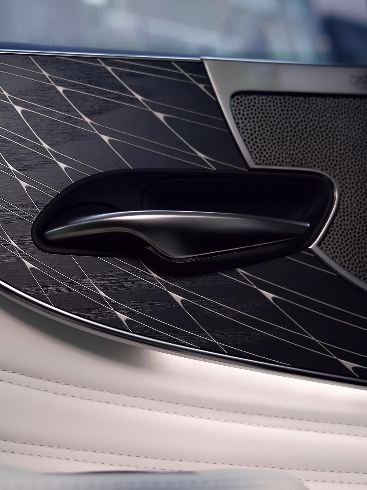 Kézzel hajtogatott ajtóbetétetek, Shimamkou mintázatú faberakás és Edo Kiriko által inspirált üveg elemek adnak kontrasztot a Takumi kidolgozású bőrüléseknek az LS kiemelkedően csendes utasterében.